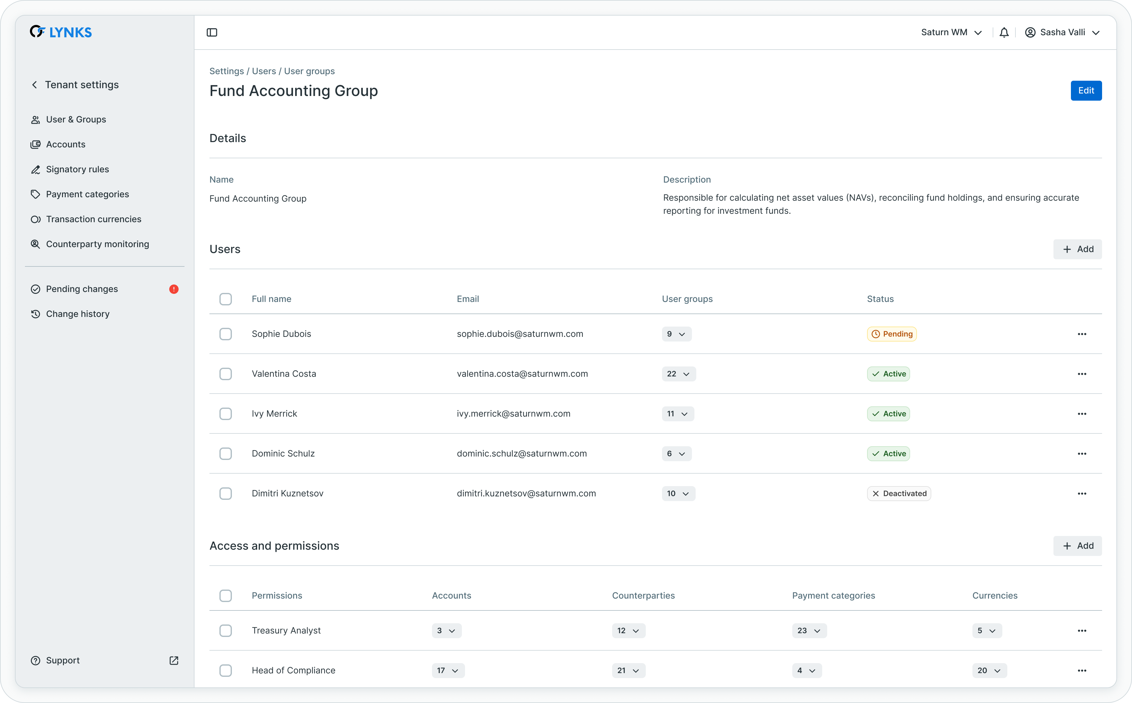 - Signatory groups - Add provisioned users to signatory groups for approval workflows
